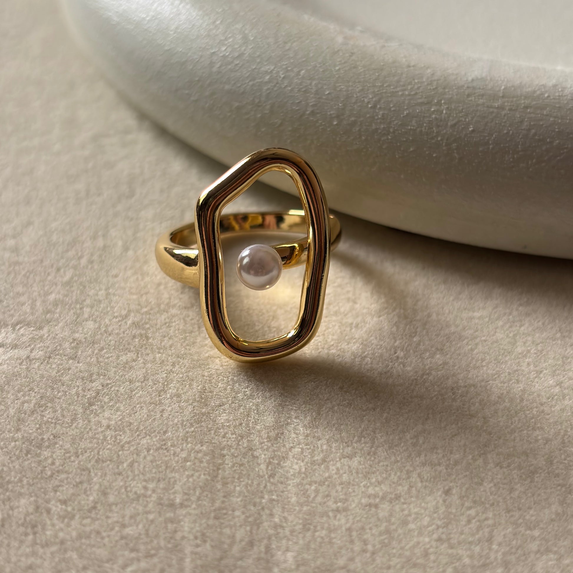 Minimalist yet striking, the Pearl Frame Ring is designed with a modern open-frame silhouette that holds a delicate pearl at its center. Its anti-tarnish gold finish makes it a timeless piece that blends elegance with contemporary charm. Whether you’re styling it for workwear or an evening out, this ring adds a touch of effortless sophistication.