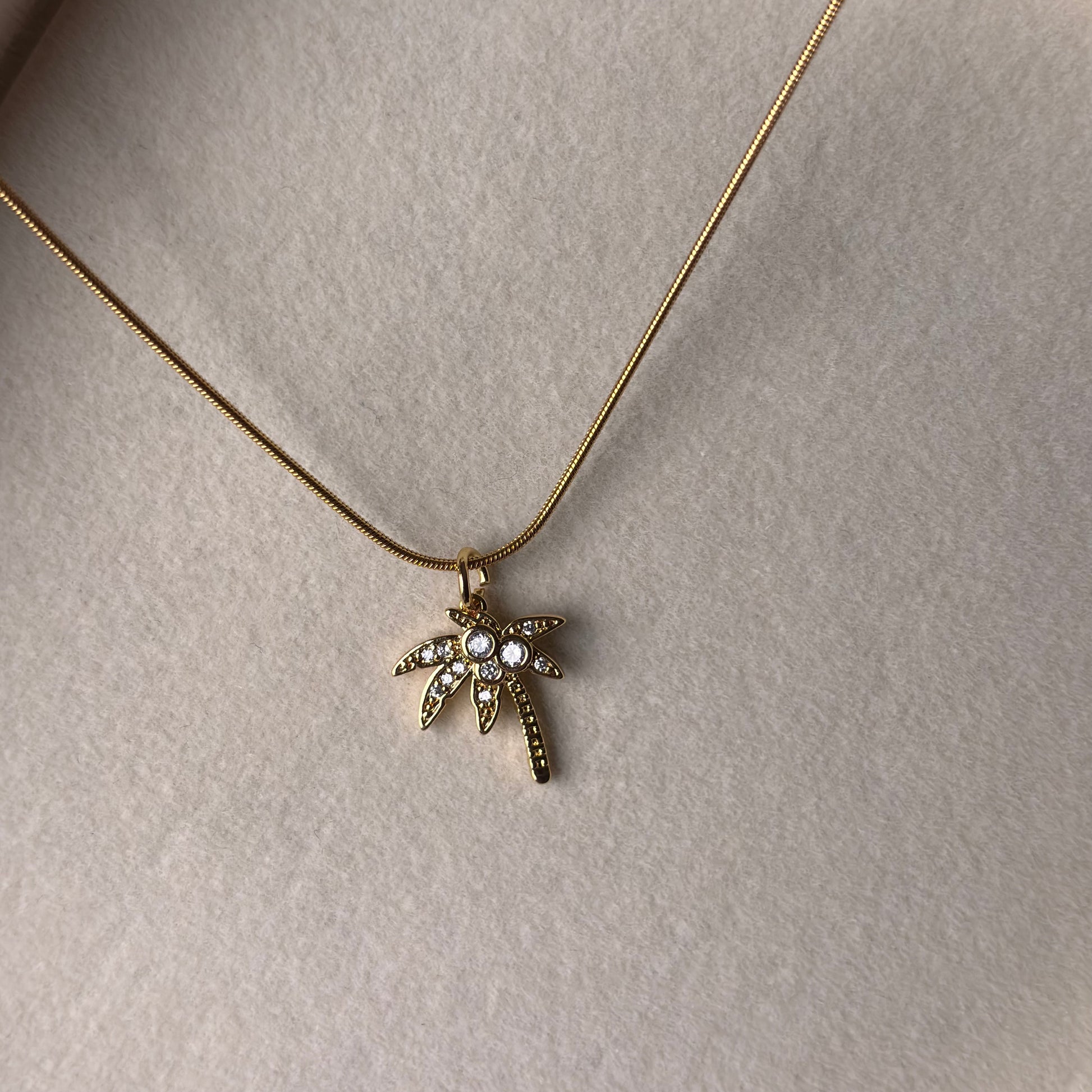 Set with brilliant crystals on a golden palm tree silhouette, this pendant brings a hint of sparkle and sunshine to your everyday style. Whether you're beach-bound or city strolling, it adds that touch of carefree glam you didn’t know you needed.